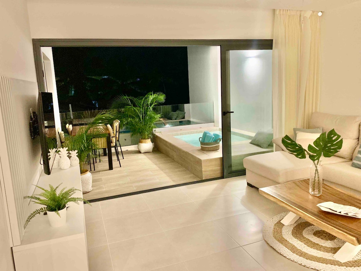 Espectacular nuevo Apartamento de lujo con piscina privada en la terraza. Un nuevo concepto de apartamentos en Punta Cana que te proporcionará confort, privacidad y seguridad para pasar tus vacaciones. Habitaciones amplias, cocina totalmente equipada, muebles de diseño, wifi de alta velocidad, check in online con la ultima tecnología. Sin duda una nueva experiencia para vivir Punta Cana de una forma diferente.