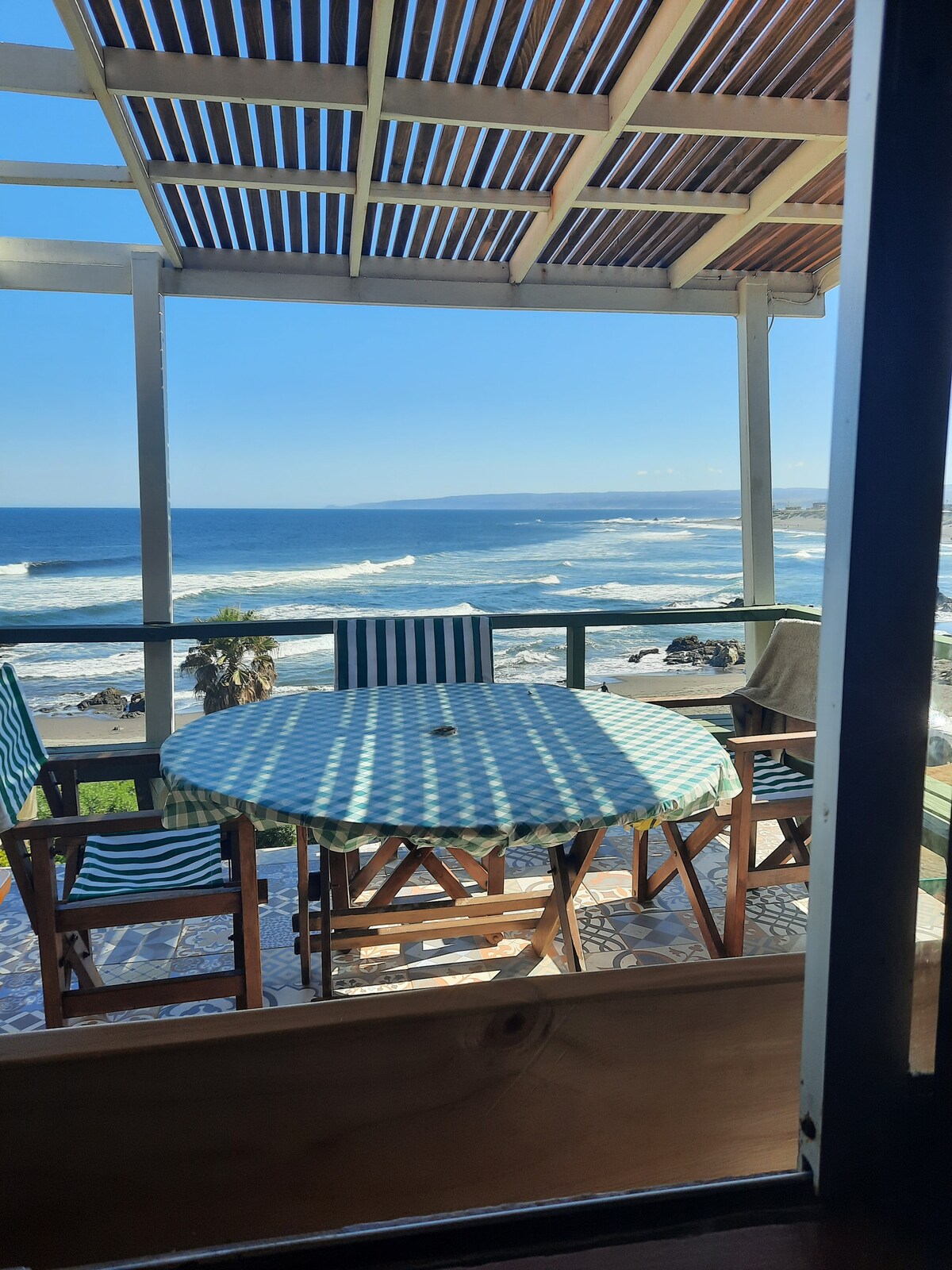 Bienvenidos a nuestra hogar! Te invitamos a pasar una acogedora estadía. La casa tiene una ubicación preferencial, al frente a la playa a dos minutos a pie y una vista panorámica increíble hacia el bosque y una vista despejada al mar y las olas. Sobre las instalaciones, está full equipada para máximo confort, para que disfruten cada segundo de su estadía. Ésta cuenta con 1 pieza, baño, cocina americana, living, parrilla, hot tub, fogón, estacionamiento, wifi, y un agradable sonido del mar.