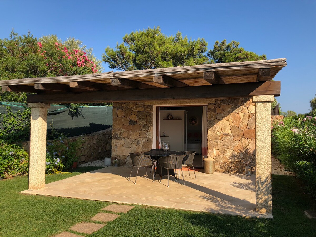 La suite se encuentra en la zona de Monte Contros, en Porto San Paolo, desde donde se puede disfrutar de una vista panorámica del mar. La suite consta de un dormitorio doble, un baño privado y un jardín bien cuidado en el que se encuentra la bañera de hidromasaje de uso exclusivo. El alojamiento es totalmente independiente. Se ha cuidado cada detalle para crear una experiencia visual pura, sin distracciones, que induce una sensación de relajación inmediata como en un oasis de paz.