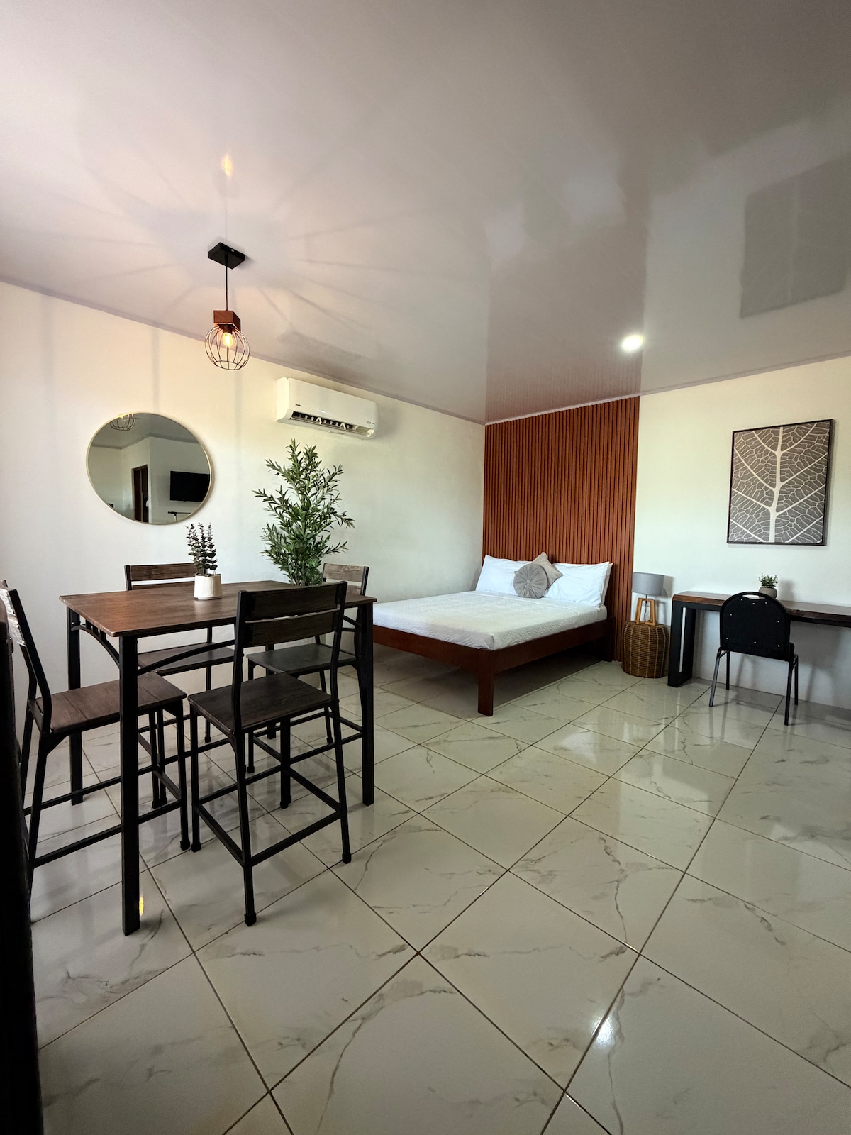 Despiértate con el sonido de las olas en Villa Las Mareas. Ubicada frente al mar, nuestra villa de 3 dormitorios ofrece un hallazgo excepcional en Puerto Carrillo: una piscina privada con vistas panorámicas al Pacífico. Contempla las puestas de sol de color naranja fuego desde la terraza, escucha a los monos aulladores o explora las pozas de marea a pocos pasos. Incluye aire acondicionado, baño privado y cocina completa. A 5 minutos en auto de las arenas blancas de Playa Carrillo, pero a un mundo de distancia en privacidad. La escapada perfecta a la “Zona Azul”.