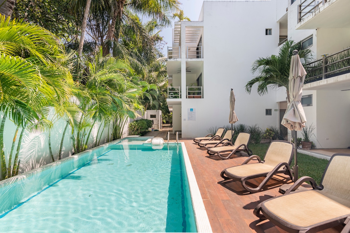 ★ READY FOR FEBRUARY 2026 - PLEASE READ EVERYTHING ★ Located in the less busy part of center downtown Playa del Carmen, MX ➤ Just steps from the famous 5th Ave ➤ Surrounded by restaurants & entertainment ➤ 5 minute walk to the Caribbean beaches ➤ Walk Score of 90 out of 100 (central location, walkable to everything) ➤ Ocean view balcony ➤ Rooftop pool ➤ On 46th Ave, better known as "CTM" ➤ Elevator ➤ Washing machine ➤ 50' Samsung SMART TV ➤ Fast Wi-Fi (20 Mbps) ➤ Fully Equipped Kitchen ➤ A/C