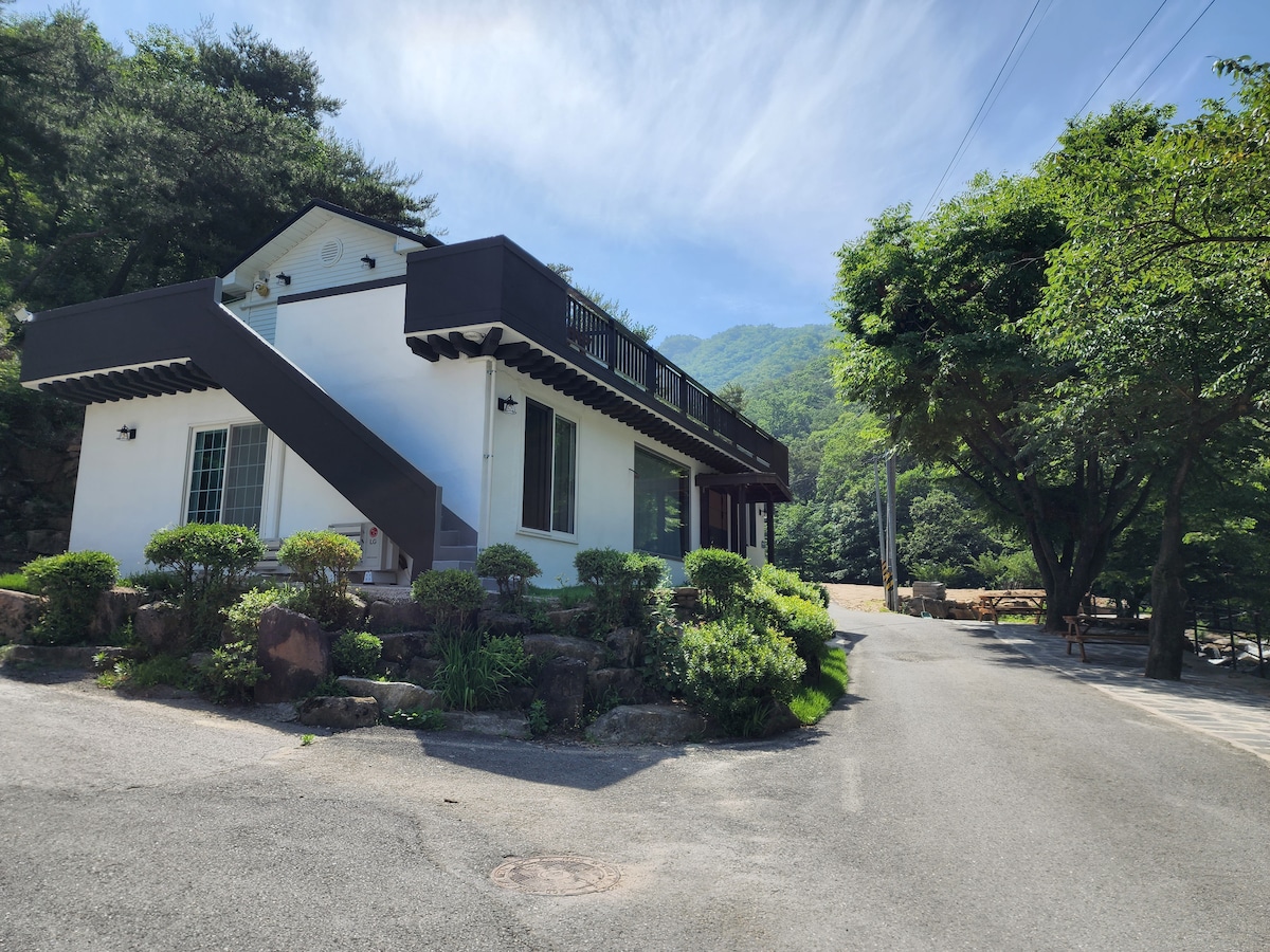384 Gangrimseo-gil, casa limpia. El anfitrión se encarga de mantener la higiene y la limpieza del alojamiento en las mejores condiciones. Escápate del centro de la ciudad y vete a la naturaleza ¡Abre tu corazón al cielo azul y al aire fresco! ¡Un espacio solo para nosotros! Un arroyo claro que solo nosotros disfrutamos, Disfruta de una barbacoa y fogata en un lugar donde se escucha el sonido del agua del valle~ ¡¡La casita es la única que se encuentra en el valle!! Es un lugar donde no se siente el paso del tiempo con solo mirar la naturaleza que tiene un atractivo diferente en cada estación. Un lugar para sanar el cuerpo y la mente Es mi propio alojamiento privado que prioriza la higiene y la limpieza. Para aquellos que quieran una curación en casa, deben usar las instalaciones de conveniencia a 10 minutos en coche, así que prepárese y disfrute de este lugar con la naturaleza. No hay restaurantes, cafeterías o supermercados a los que se pueda ir andando. No hay servicio de entrega de comida. Un lugar tranquilo donde solo puedes descansar con tu familia y amigos. El alojamiento del anfitrión está justo al lado del alojamiento del huésped. El patio delantero es para uso exclusivo de los huéspedes, mientras que el patio trasero (estacionamiento) es compartido con el anfitrión. Por favor, téngalo en cuenta al hacer la reserva.