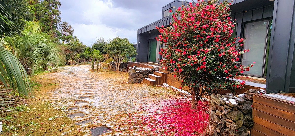 Es una casa rural anexa ubicada en Seonhul, Jocheon-eup, donde hay un bosque verde. Es un tranquilo pueblo rural junto a Dongbaek Garden y Geomun Oreum, y debajo está la playa de Hamdeok. Hay vistas a la montaña Hallasan, y a 4 minutos a pie de la propiedad hay famosos restaurantes de comida local y cafés de brunch, tiendas de conveniencia y paradas de autobús. Hay un sendero de Gotjawal que se puede caminar durante más de una hora. El dormitorio es cómodo con dos pisos y está lleno de aroma a cedro para que pueda descansar cómodamente.