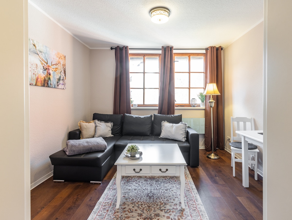 El estudio hogareño de "Das Kutscherhäuschen" cuenta con suelos de madera, muebles de madera maciza e iluminación suave. Cuenta con TV de pantalla plana con canales vía satélite, zona de estar y terraza. La cocina pequeña está bien equipada para preparar comidas caseras. También puedes encontrar varios restaurantes y cafés a 10 minutos a pie. El estudio cálidamente decorado ofrece wifi gratuito, una pequeña cocina y un televisor de pantalla plana con canales vía satélite.