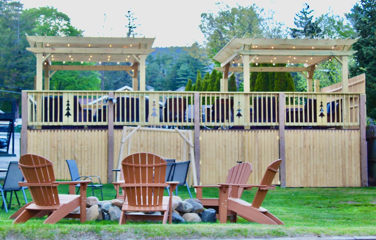 Disfruta de nuestro estudio King–King de concepto abierto inspirado en Adirondack, una cabaña independiente diseñada para la comodidad y el carácter. Este espacioso estudio cuenta con dos camas tamaño king en una sala de estar abierta, además de un futón, una acogedora chimenea, una cocina equipada y un jacuzzi en la unidad. Disfrute de vistas limitadas al lago y una terraza privada con parrilla para barbacoa. Los huéspedes también tienen acceso a la piscina, el jacuzzi, la playa, el fogón y kayaks, canoas y tablas de paddle gratis. A solo 5 minutos a pie del pueblo.