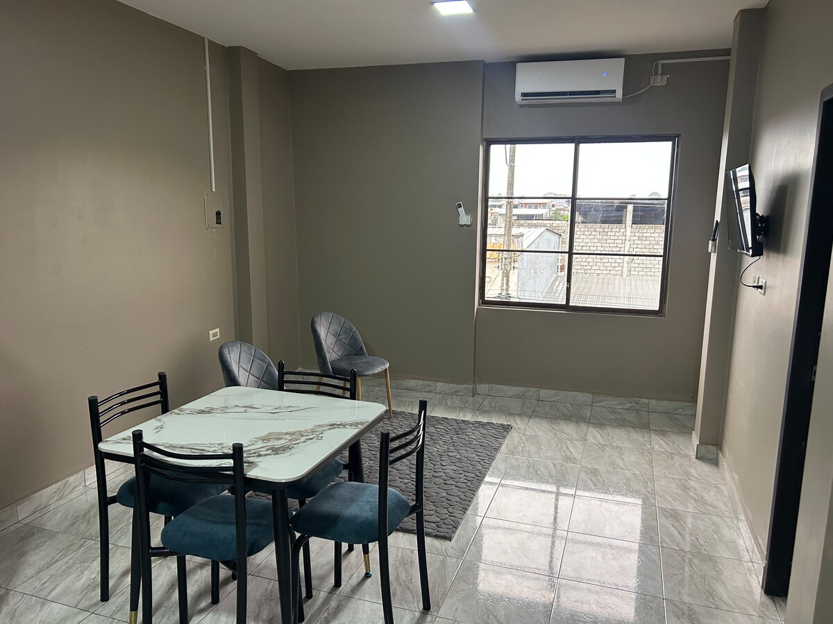 Relájate en este espacio tan tranquilo y elegante. departamento amoblado con 1 dormitorio, 01 cama, full equipado, aire acondicionado, wifi, servicio básicos, ingreso independiente, garaje en el lugar. A tres minutos del patio shopping de Quevedo.