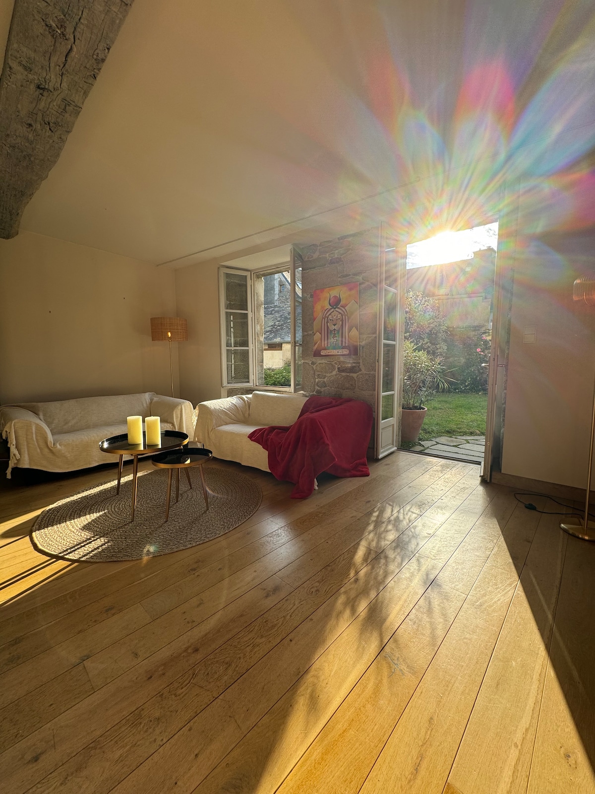 Idealmente situado a 1, 8 km del encantador puerto de Lesconil y de la gran playa de arena blanca. Sala de estar, cocina abierta, sala de estar/estufa de leña, sofá cama, cuarto de baño: ducha e inodoro. Planta en altillo, la escalera para acceder a ella es empinada, con 2 camas (90x200). Las camas están hechas a su llegada para unas vacaciones relajantes y rejuvenecedoras. Posibilidad de almorzar/cenar fuera en el patio compartido de esta granja bretona (orientada al sur). Kit de bebé disponible a petición.