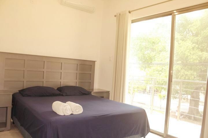 Your vacation home away from home; ideal for couples, digital nomads or solo travelers. With fast internet, bedroom with king bed, A/C unit, kitchenette & balcony plunge pool. You will have access to incredible common areas such roof top pool, Jacuzzis, and much more. One of the most convenient locations you will be within walking distance to some of the best restaurants, shops and supermarket; and closeto the beach.. You will have everything you need to live the Tulum experience.