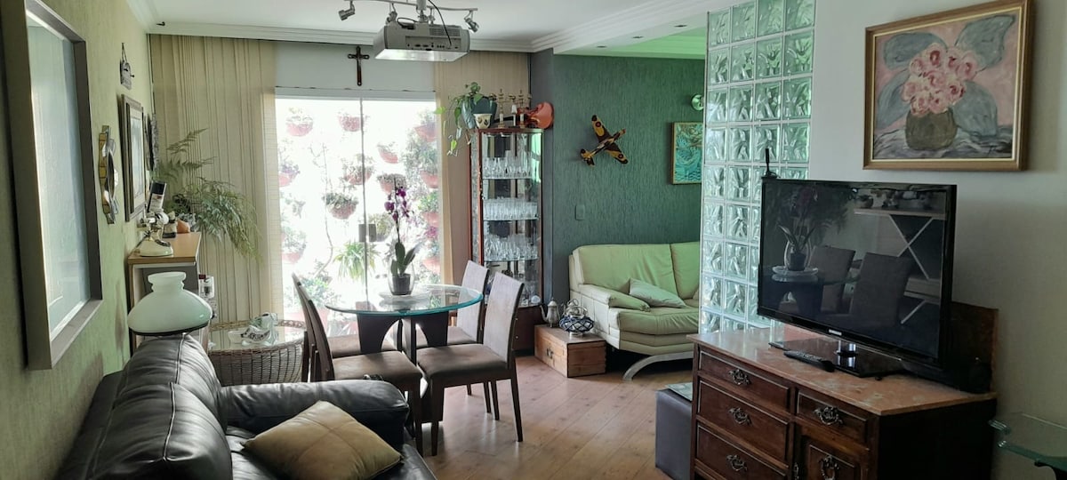 Cómodo apartamento, alto astral, bien iluminado, espacioso, tranquilo, balcón con vistas verdes, ventiladores , wifi, TV por cable, lavandería, 3 garajes fijos. Cerca del Hospital Albert Einstein, el Hospital São Luis, el Estadio Morumbi, Centro Empresarial, Credicard Hall, Citibank Hall, Shopping Jardim Sul y Morumbi Town , Rocha Verá. También cerca de 2 estaciones mêtro. Panadería las 24 horas a 400 metros y el supermercado Pão de Açúcar Minuto también . Edificio familiar.