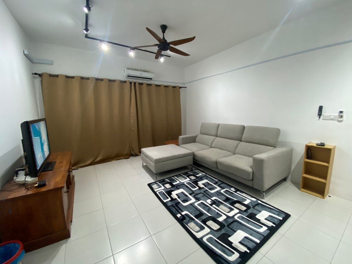 Esta unidad de esquina tiene 4 dormitorios con 5 camas y 3 camas plegables ubicadas en Taman Putra, Bukit Rahman Putra Sg Buloh. Esta zona residencial cuenta con guardia de seguridad las 24 horas que patrulla la zona y vigila las 2 puertas A y B. Esta casa es acogedora y limpia, lo que te da a ti y a tu familia una mente tranquila para descansar. Es una unidad de estacionamiento de esquina para tarjetas, no hay problema. Este taman es nuevo y está en tierra malaya reservada, por lo que la mayoría de los residentes son malayos. Surau está a poca distancia a pie de la unidad.