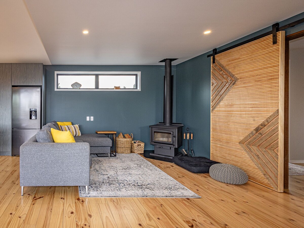 This container home is set in a private spot surrounded by native bush with a view of the mountain through the trees. The interior of the cabin consists of a separate bedroom with a queen size bed, a fully equipped kitchen, lounge and wood burner. The container has a cosy ambience with lots of light on a sunlit day. Large ranchsliders connect you to the natural world outside for hiking, kayaking, canoeing, skiing or mountain exploring. Walk across the road to dine or relax and cook at home.