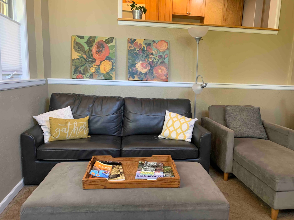 Un espacio acogedor en un barrio tranquilo y agradable de Seattle que te hará sentir como en casa. A solo 2 minutos a pie de las tiendas del barrio con deliciosos pasteles, bagels, crepes, pizza, cervezas locales, así como una gran variedad de restaurantes. Cocina totalmente equipada y todas las comodidades de un hogar en un entorno limpio y hogareño con internet de alta velocidad. Parque infantil y centro comunitario a pocas manzanas y a pocos minutos del tren ligero, tiendas de comestibles, el lago Washington y el lago Green.