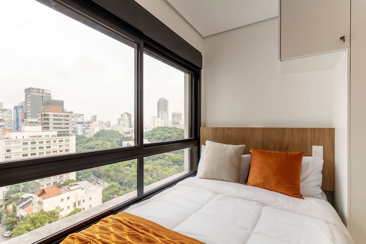 Estudio nuevo, diseño moderno y completo. Ubicación privilegiada junto al metro Oscar Freire, Edificio nuevo con conserjería 24 horas, gimnasio, piscina, coworking, etc. cerca de la Av. Paulista, Rua Augusta, Hospital das Clínicas, Centro de Convenciones Rebouças, mercados, farmacias, restaurantes de renombre y tiendas de diseño. Internet Fibra 300 mega, Smart TV 43, (Netflix / Amazon Prime/ GloboPlay) Aire acondicionado. Puerta de balcón insonorizada con cortina opaca.