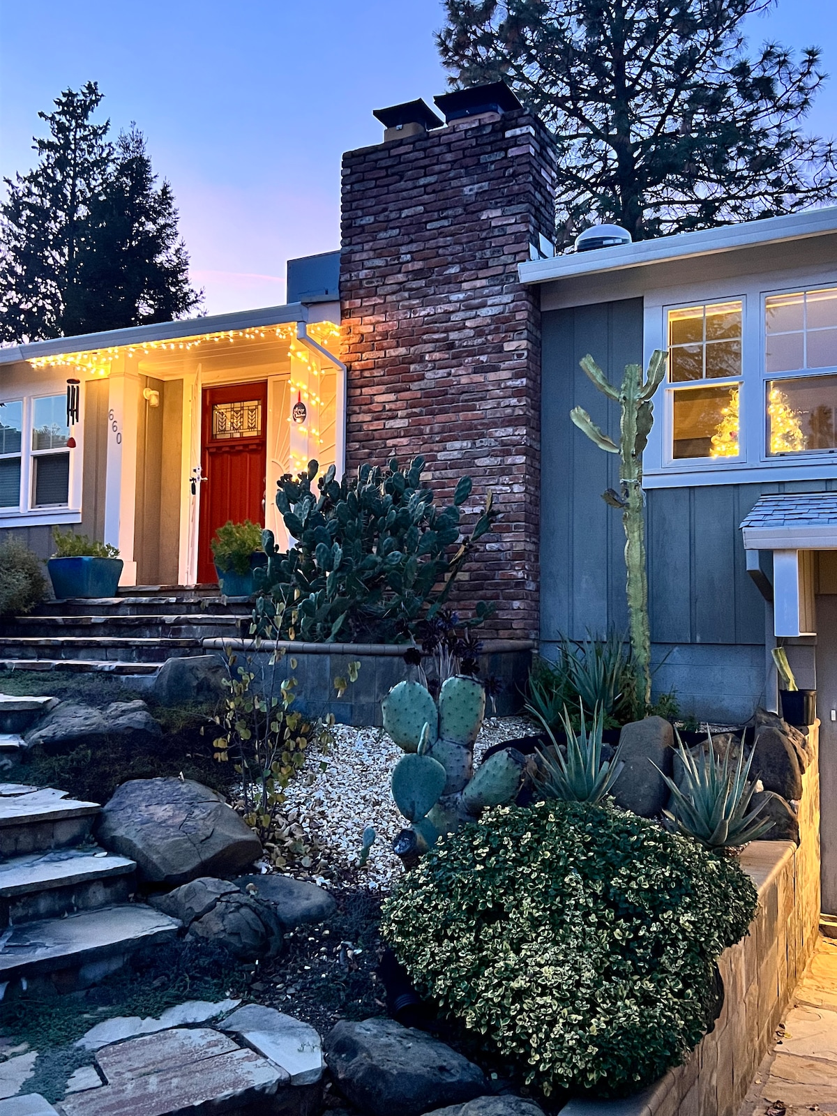 Redding is your gateway to the great outdoor recreation of northern California and Jardin Pasatiempo is the key to making your visit a comfortable stay. With 2,200 sq ft, you will find the house open and bright with views of the garden. a gourmet kitchen and shopping close by make it easy for you to make your favorite food. Find solitude in a hidden, quiet garden spot. Or, take advantage of the lounge deck, fire table or outdoor covered dining area.