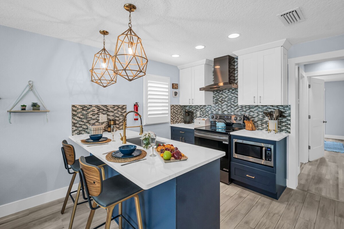 Flipper 's at Mad Beach está a solo unos pasos de las arenas azucaradas de Madeira Beach y cerca del famoso John' s Pass Village & Boardwark, donde las compras y el entretenimiento siempre son geniales. Completamente renovado con baldosas de porcelana ligera, bonitos muebles, cama queen con memoria Thempur-Pedic colchón, ducha moderna exquisita, armarios de cocina altos con un montón de almacenamiento. Enorme patio privado pavimentado cercado con gazebo, ideal para el entretenimiento y la parrilla al aire libre. Te encantará la decoración de la playa.