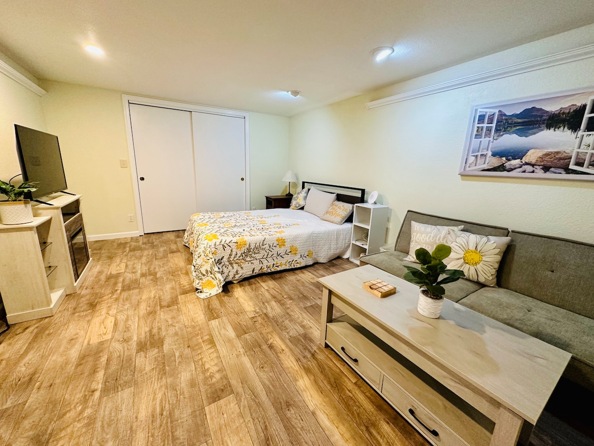 ¡Estamos ubicados en la parte alta de la ciudad, a solo 4 minutos de Winchester Bay! El barrio es muy tranquilo y cómodo. Hay una cocina totalmente equipada con muchos aparatos, una cafetera Keurig con una variedad aleatoria de kcups, una barbacoa de gas y un bar para una buena conversación. En la sala de estar tenemos televisión por cable Spectrum y wifi de alta velocidad. Hay 2 dormitorios con una cama tamaño king y una cama tamaño queen, ambas arriba. Hay mucho espacio para un colchón hinchable en la sala de estar, que está en el armario de abajo.