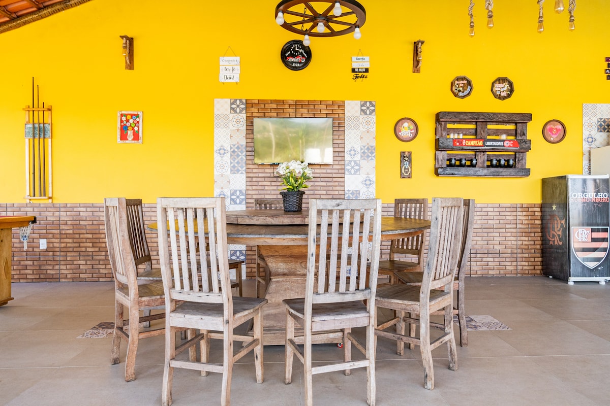 La propiedad cuenta con 5 dormitorios, 4 baños, cocina, sala de juegos, parrilla, piscina, ducha, arroyo en la propiedad, tobogán y casa para niños, entre otras atracciones. Situado a menos de 1 km de la RJ 142, en la localidad de Floresta 2, enfrente se encuentra Romão, donde pasa el río Macaé. ¡Los chalets no están incluidos en el alquiler! Traiga su toalla, sábana y mantas, ya que no proporcionamos ropa de cama. Le recomendamos que lleve repelente de insectos. Deje la basura en el basurero a los lados de la carretera.