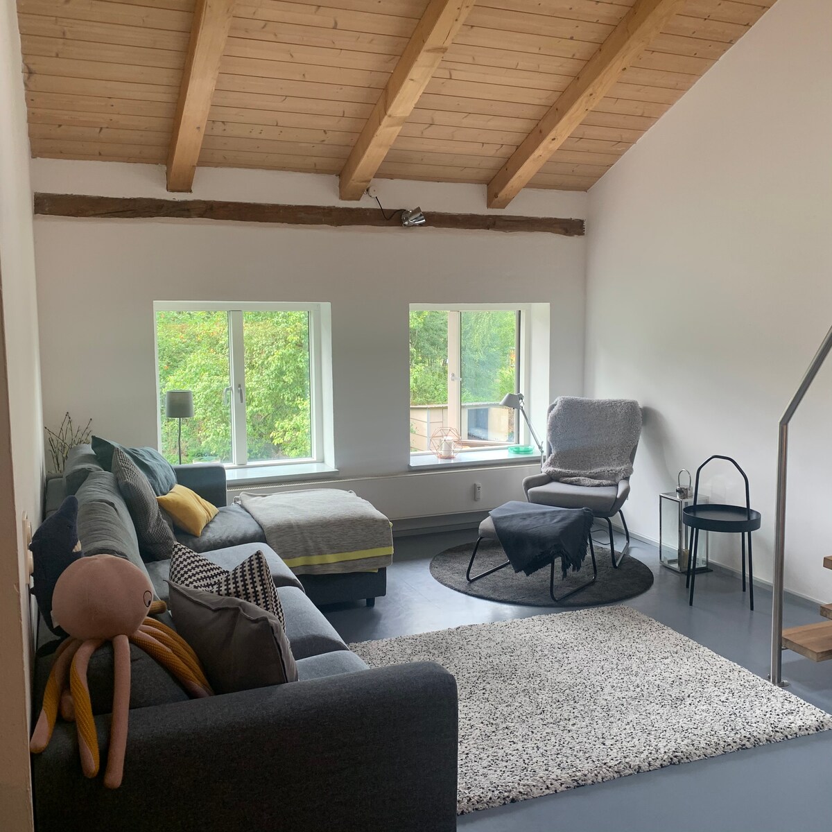 Si buscas un centro vacacional realmente tranquilo y relajante, te encantará vivir en nuestra maravillosa casa granero antigua cuidadosamente renovada por un arquitecto que ama las casas antiguas y la técnica moderna (ese soy yo). Puedes disfrutar de un televisor realmente grande (incl. reproductor BluRay, etc.), internet y una acogedora chimenea. Sumérgete en la naturaleza bajo viejos robles y fresnos, despierta con el canto de los pájaros felices y observa liebres, faisanes y ciervos caminar por las enormes puertas de cristal frente a la cocina y el salón.