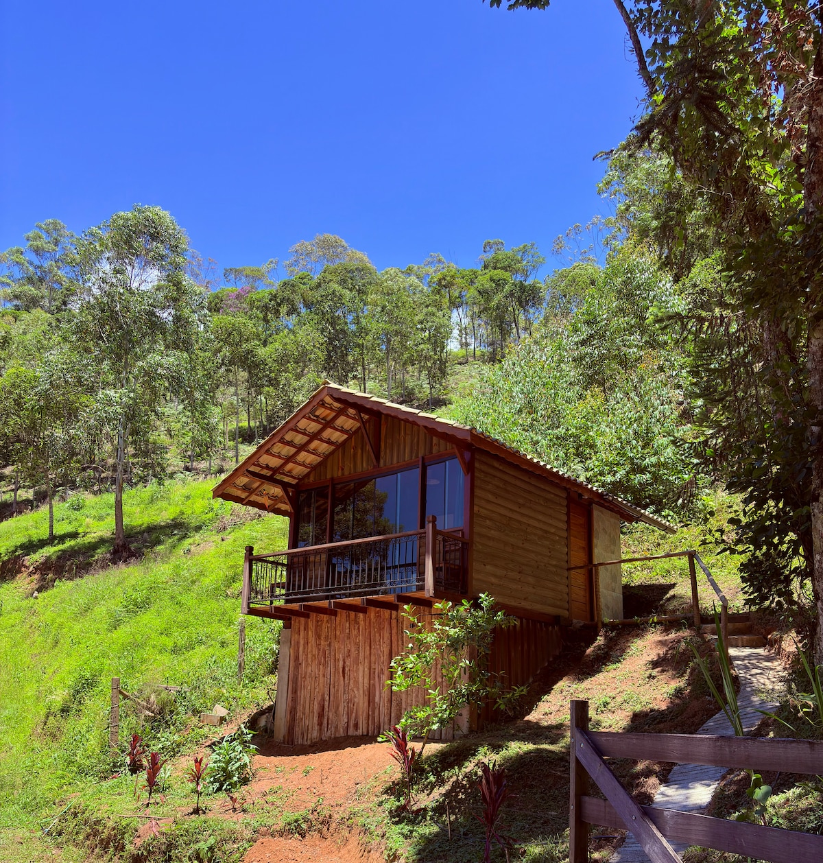 Mi espacio es un chalet muy nuevo y acogedor, con cocina equipada, baño y balcón en la primera planta, y en la segunda planta hay un dormitorio con una cama doble y una cama individual y una terraza con unas vistas increíbles... Estamos a 36 km de la ciudad de Itamonte. Ven a descansar y relajarte en medio de la naturaleza y las montañas de Mantiqueira. Y estamos a 17 km del parque nacional de Itatiaia, en lo alto de Agulhas Negras. Y cerca de varias hermosas cascadas del río Aiuruoca.