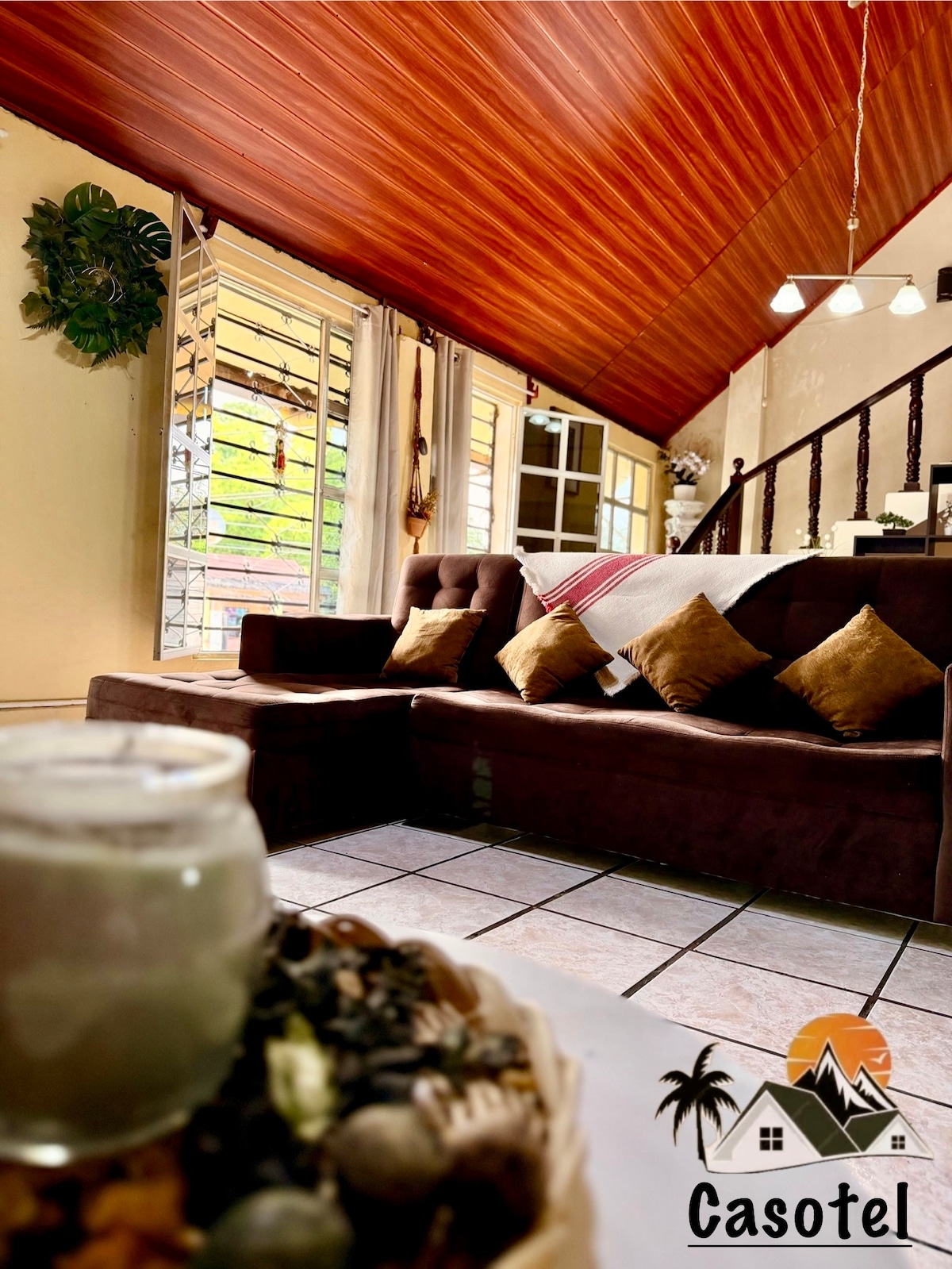 Relájate con toda la familia en este alojamiento donde la tranquilidad se respira. Ubicada en un entorno sereno y seguro, La Casa de Emi es el lugar ideal para desconectar y disfrutar de la paz que ofrece la naturaleza. Cuenta con amplios ventanales donde podrás admirar impresionantes vistas de volcanes y los celajes que cambian de color a medida que avanza el día. Con un diseño acogedor y moderno, está pensada para ofrecerte la máxima comodidad y seguridad, garantizando una estadía relajante.