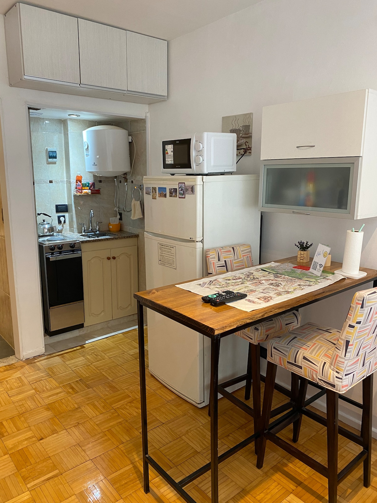 Apartamento en el Downtown de Buenos Aires. Ubicado en el piso 27 de edificio torre en Av. Corrientes 818, esquina Esmeralda, Ciudad Autónoma de Buenos Aires. Ubicación privilegiada y cerca de todo. Muy luminoso y vista abierta. A 200 m. del Obelisco y de la calle Florida. El alquiler incluye: • Aire acondicionado / Calefacción. • Seguridad 24 hs. • Smart TV. • WI-FI • Microondas. • Jarra eléctrica. • Heladera. • Secador de cabello. • Plancha. • Sábanas y toallas. • Jabón y shampoo.