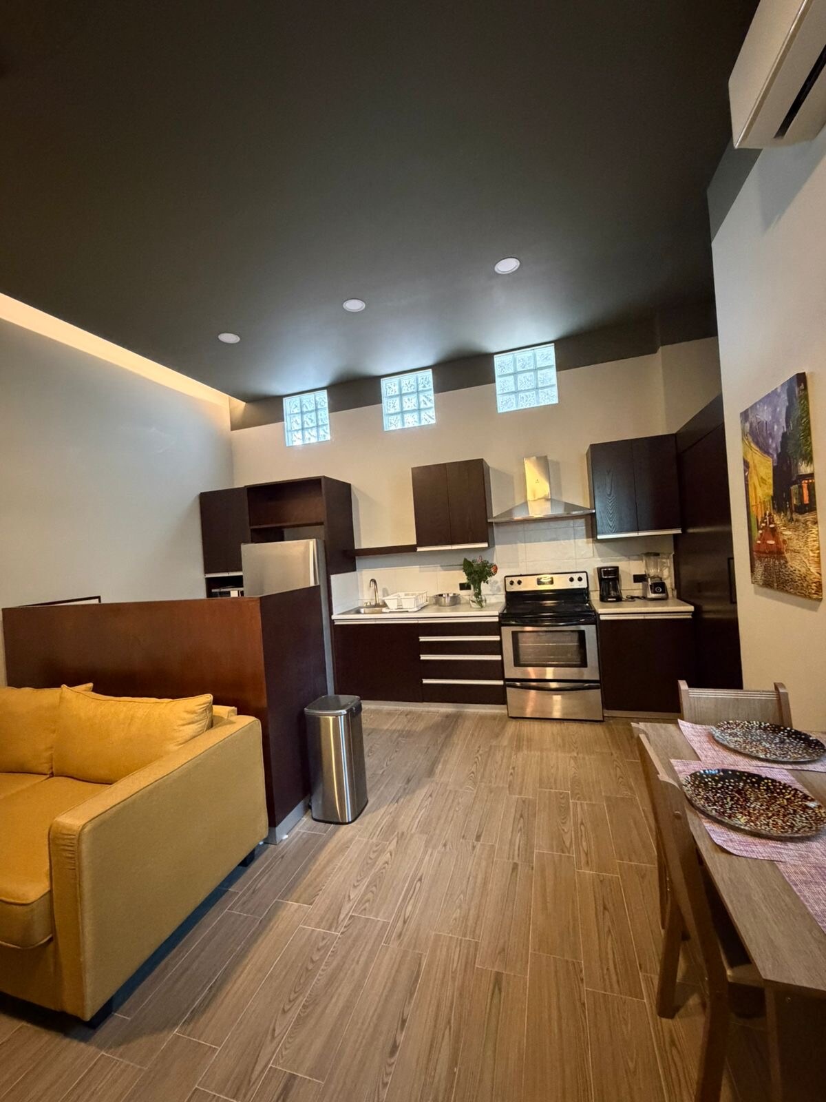 Este cómodo y limpio departamento cuenta con una recámara con una cama King Size para un descanso óptimo (disponible un catre). Disfruta de la comodidad de una cocina integral completamente equipada, así como de una lavadora y secadora para tu conveniencia. Además, contamos con estacionamiento techado para un vehículo y la facilidad de auto check-in, para que tu llegada y salida sean sencillas y sin complicaciones. ¡La estancia perfecta para disfrutar de la ciudad con todo el confort necesario!
