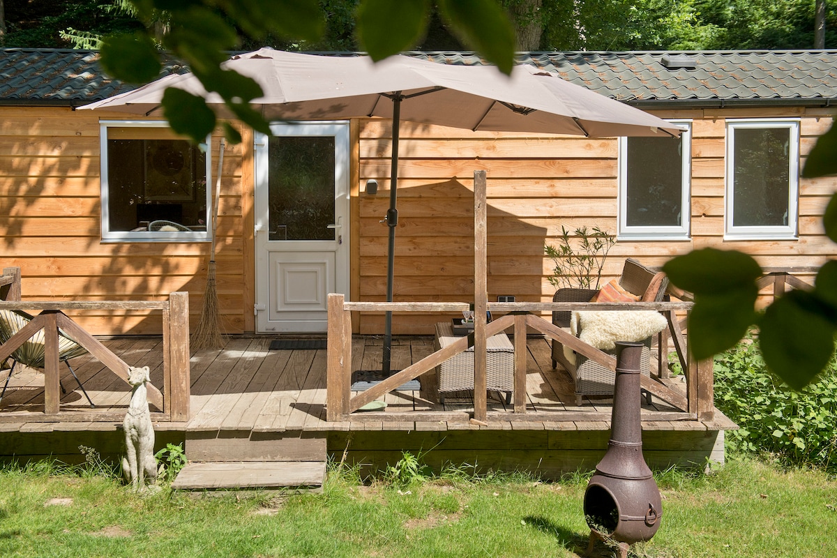 Alojamientos en el Posbank en Rheden. Chalet de lujo, 45 m2 con jardín en un tranquilo parque de vacaciones al pie de la reserva natural «de Posbank/Parque Nacional Veluwezoom». Amplio salón, dos dormitorios, baño, cocina con estufa de pellets y estufa eléctrica/aire acondicionado y WiFi gratuito. Bonita terraza con estufa de leña en el jardín. Restaurantes, centro de visitantes y oficina de turismo (Peter Overstegen) con alquiler de bicicletas y scooters a pocos pasos. A 15 minutos de la estación. Wilduitkijkpunt a la vuelta de la esquina.