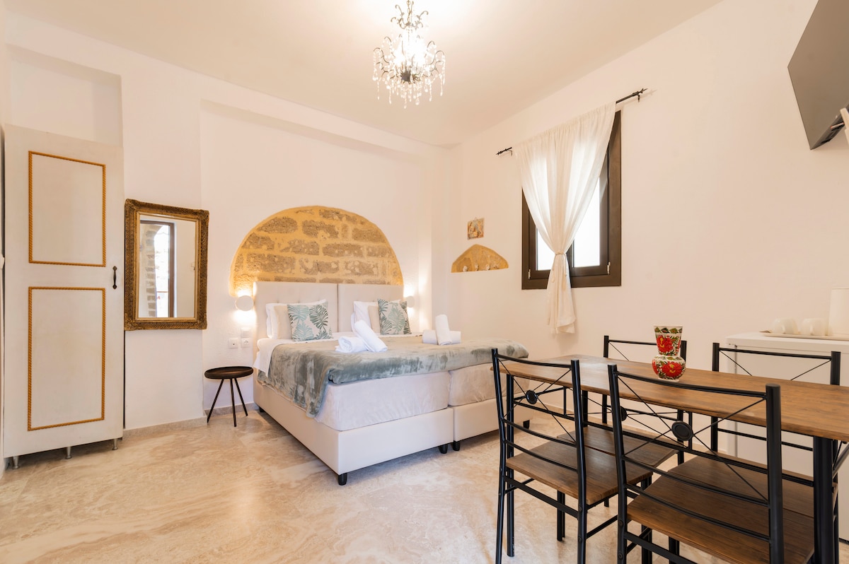 Habitación arqueológica en un barrio tranquilo en el casco antiguo de Rodas, recién reformada con baño privado dentro de la habitación, cocina, aire acondicionado y wifi. Puedes elegir entre camas dobles o individuales. También tienes acceso a nuestra terraza principal y jardín. Estamos aquí en la recepción/cafetería de 07:00 a 22:00 todos los días. Tenemos ALMACENAMIENTO y un baño/ducha adicional que puedes utilizar. Es posible realizar el registro de entrada por la noche.