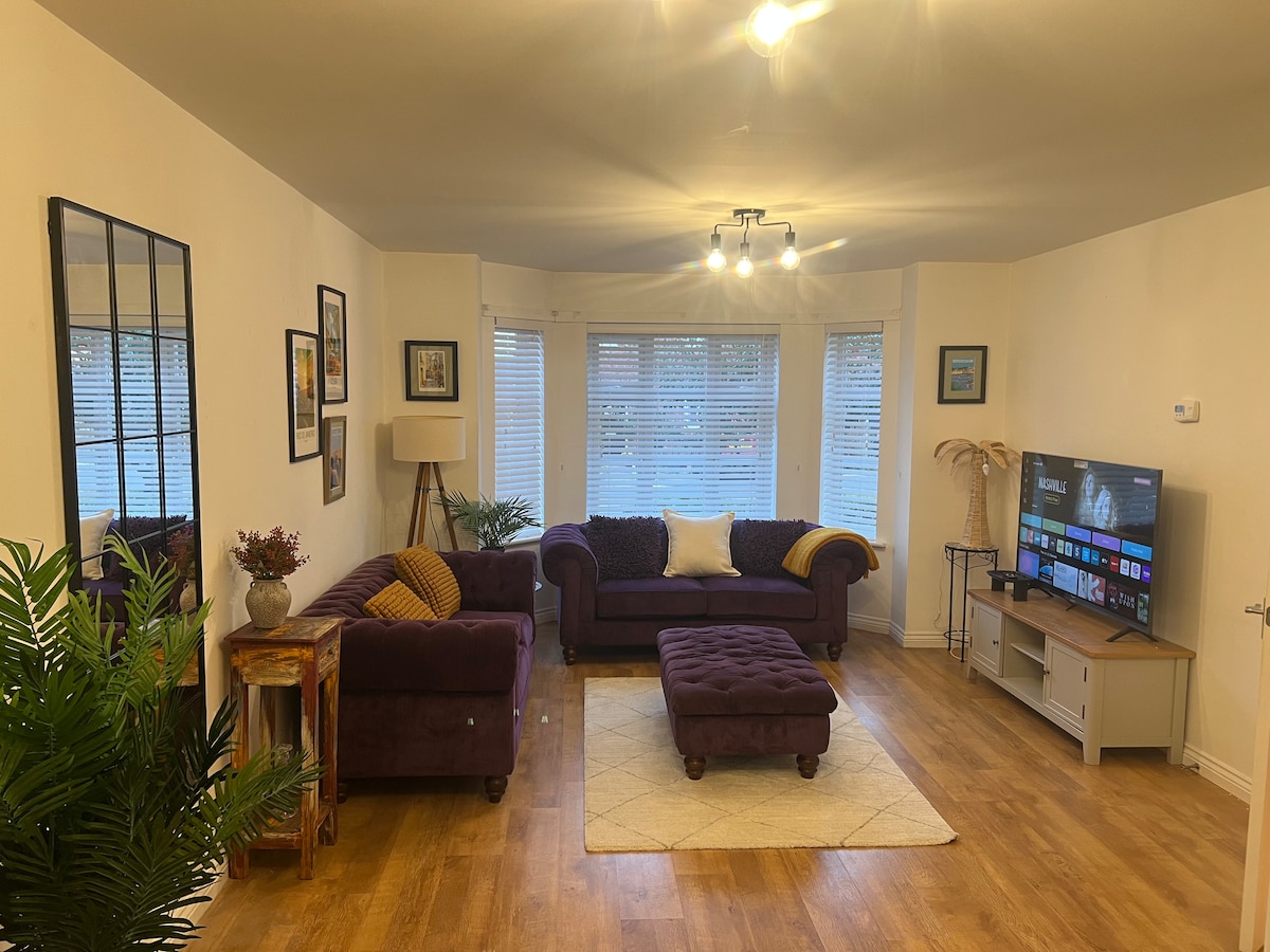 Cómodo hogar lejos de casa. Ideal para familias y contratistas que buscan una estancia relajante. Cerca de los servicios locales y de la A38/M1. Este alojamiento ofrece alojamiento independiente para estancias cortas y largas para huéspedes que buscan un ambiente hogareño cómodo. El alojamiento ofrece cocina con lavadora, microondas, hervidor de agua, neveras y congelador, comedor independiente con 6 sillas, sala de estar con TV y sofá cama, 2 dormitorios con 2 camas individuales y 1 cama doble y 1 baño.