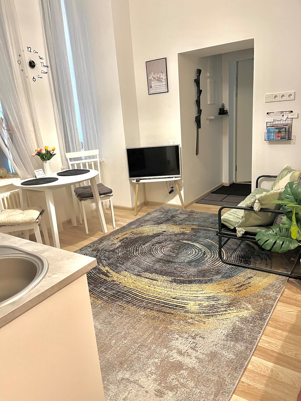 Disfruta de un retiro tranquilo en este moderno apartamento del centro. Este elegante estudio está situado en un tranquilo patio cerrado con vigilancia las 24 horas. El apartamento viene equipado con todos los utensilios y electrodomésticos para preparar comidas por tu cuenta y puede alojar a una familia con 1 niño. Situado en el corazón del casco antiguo, junto a la iglesia de San San Pedro, la plaza del Ayuntamiento, cerca de la estación de autobuses y la estación de tren. Tendrás innumerables cafeterías, bares, discotecas y parques verdes encantadores a tu alcance.