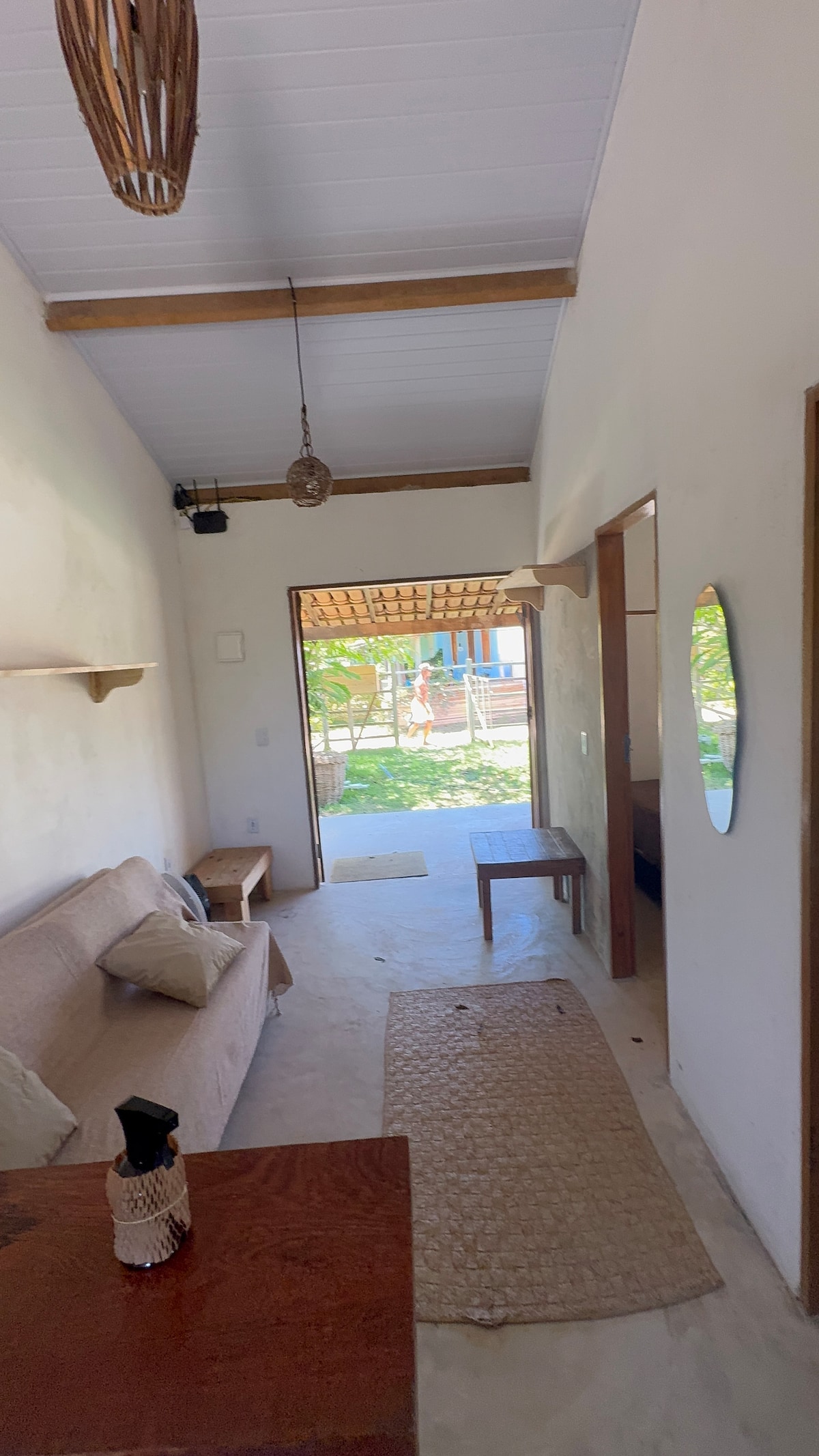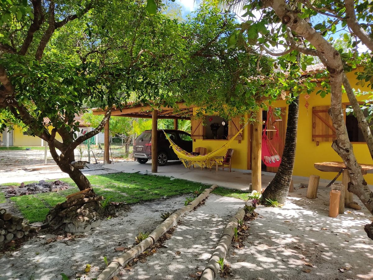 Casa en Caraíva, a 800 m de la plaza (Iglesia) y a 200 m de la playa. Es una casa de construcción y concepto autóctonos, adaptada para la comodidad de los huéspedes. Baño con ducha de agua caliente. Cocina integrada en el salón, con nevera, fogones, freidora de aire, sandwichera, etc. Lavadora externa de 14 kg. El altillo tiene un dormitorio grande y un balcón con una hamaca. Contiene, además de una cama tamaño queen, dos camas individuales, todas bien distribuidas. Aire acondicionado. Gran césped interior con ducha exterior.