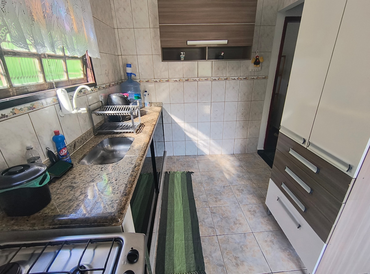 Relájese con toda su familia y su mascota, en un espacio cómodo y tranquilo. Casa amplia con patio, garaje cubierto, sala de estar, 2 dormitorios, 1 baño, cocina, despensa y área de servicio. A solo 1 km de la playa de Bosque y de la calle Feirinha, a 2 km de la Concha Acústica, de la playa de Tartaruga y de la playa del Centro, y a 4 km de la Praça da Baleia - Costa Azul. Ven a disfrutar de la ciudad más bonita de la Costa del Sol.