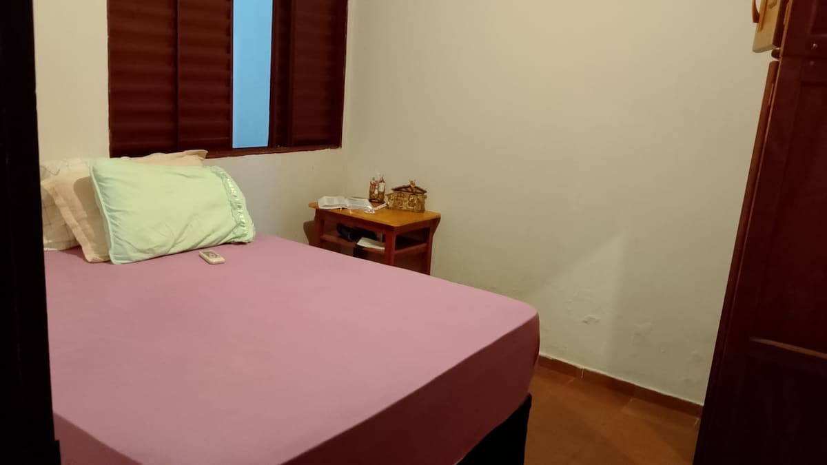 Casa de 2 habitaciones Suite de 1 dormitorio con cama tamaño queen, aire acondicionado y televisión. 1 dormitorio con una cama matrimonial y un ventilador. la cocina está equipada con estufa, horno, microondas, cafetera, licuadora, sandwichera, freidora de aire, vasos, cubiertos, platos y sartenes. Tenemos toallas y ropa de cama. habitación con sofá retráctil, TV de 60 pulgadas. Cochera taxis 2 autos. Tiene un patio trasero y se permiten animales. Está a 3,2 km de Unirv College, a 5 minutos en coche. Está a 12 km de Technoshow With Me