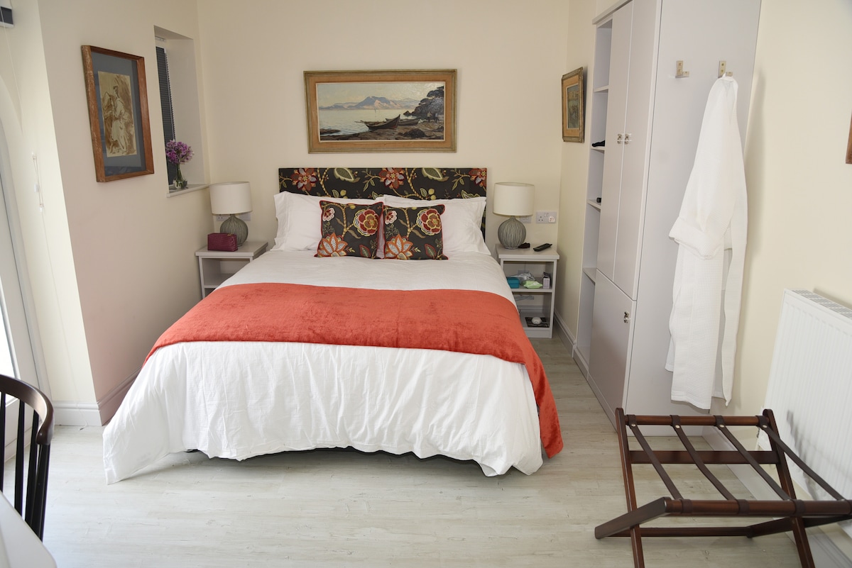 Nuestro cómodo dormitorio tamaño king con baño propio, en un área separada arriba de nuestra casa, tiene vistas a un hermoso jardín amurallado en el corazón de uno de los pueblos más hermosos de Inglaterra. También tenemos un dormitorio doble más pequeño adyacente que está disponible para el mismo grupo o es perfecto para familias con niños (a partir de 5 años). Ambas habitaciones comparten el mismo baño privado. Estamos perfectamente situados para disfrutar de la hermosa Flatford Mill y el campo de Constable. La costa también está cerca.