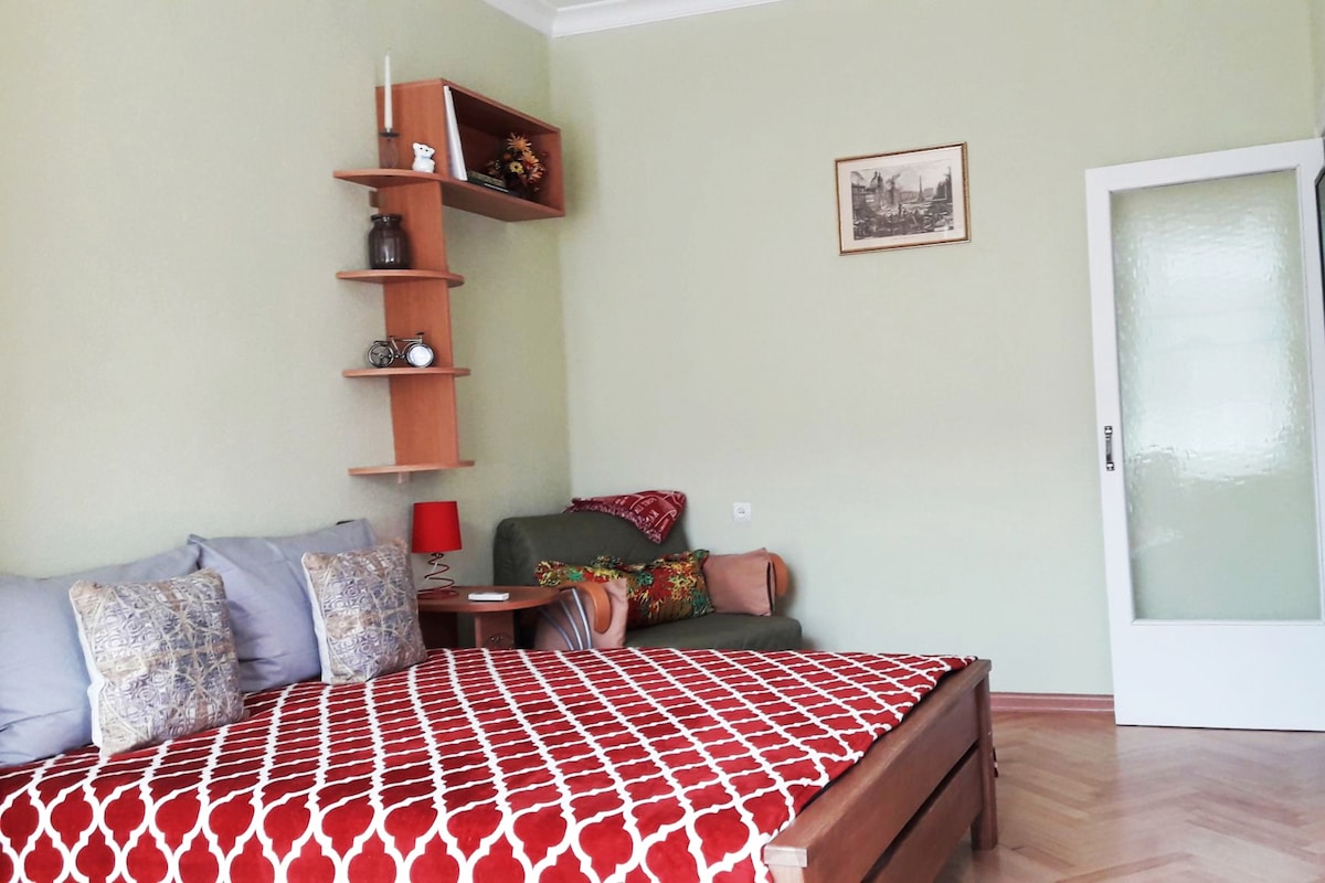 The apartments are located in Old Tbilisi on Ivane Machabeli Street, near Freedom Square. The historic building from the second half of the 19th century, designed in Neo-Moorish style, preserves the authentic spirit of the city. High ceilings, wooden parquet and antique doors are combined with modern comfort. Quiet courtyard, perfect location for walks, cafés and museums nearby. Self check-in and fast Wi-Fi.