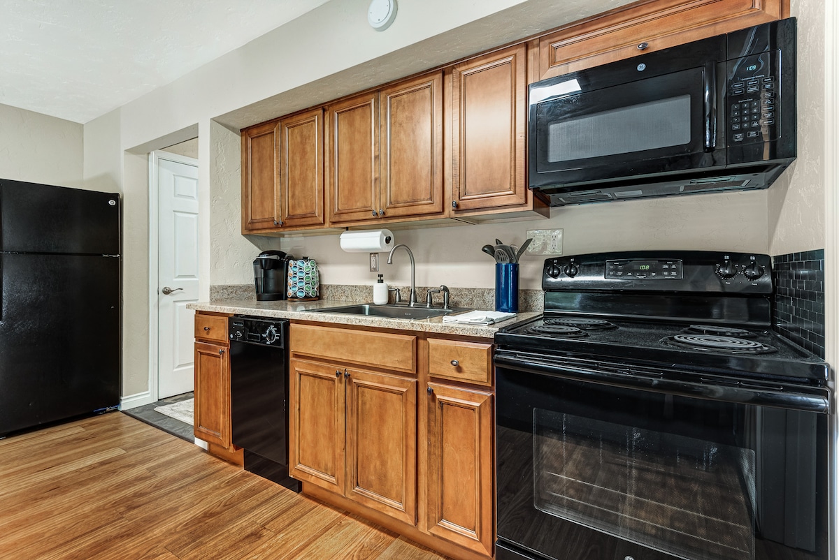 Disfruta de nuestra nueva ADU construida a medida ubicada a una manzana del río Deschutes en un barrio residencial tranquilo, a solo 10 minutos a pie del centro de la ciudad a lo largo del sendero del río. En este espacio moderno, luminoso y privado, disfrutarás de los lujos de suelos de madera, encimeras de cascada, un espacio de trabajo integrado, suelos de baño de baldosas con calefacción, un televisor inteligente de 55 pulgadas, barbacoa y chimenea, y agua caliente sin fin, además de estacionamiento fuera de la calle y cargador de vehículos eléctricos. Una cama tamaño king, un sofá cama con una cama nido y un sofá cama tamaño queen.
