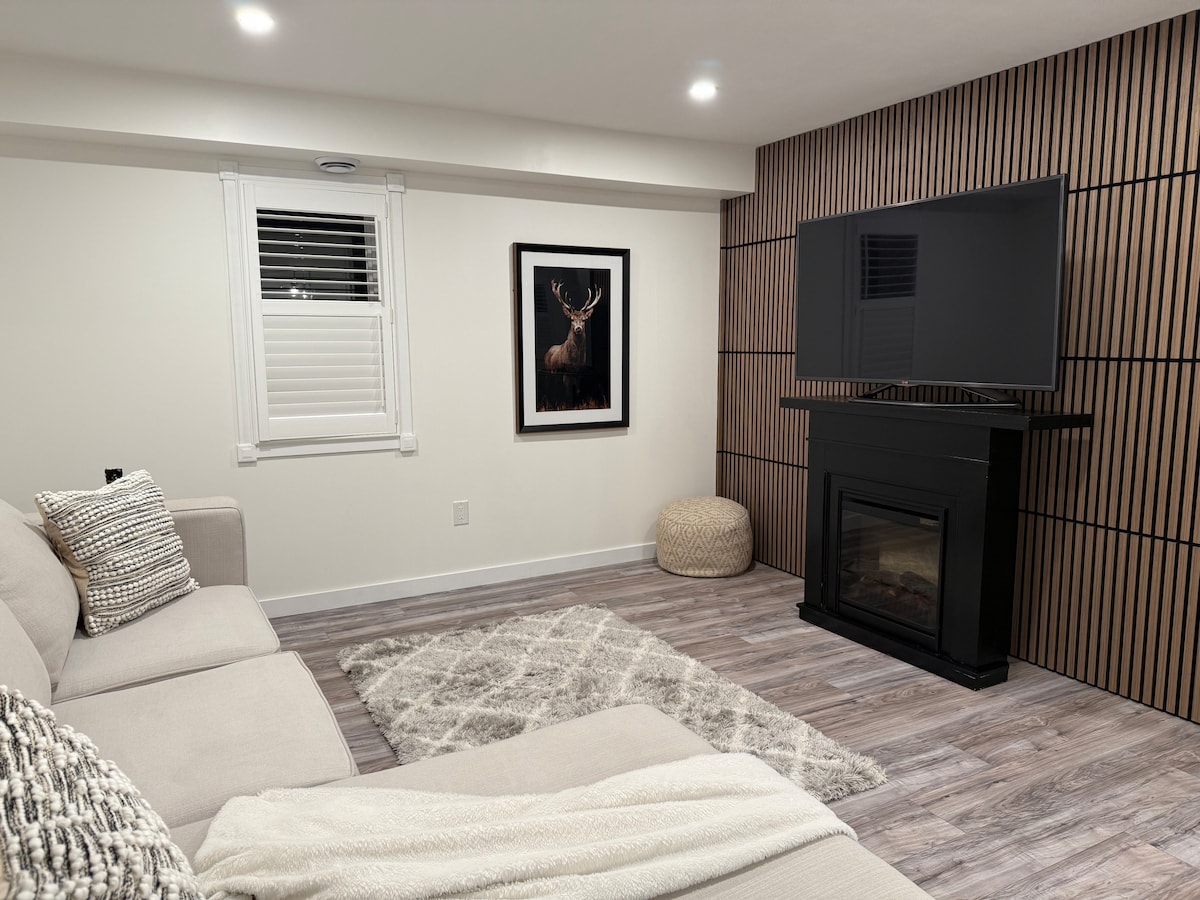 Precioso apartamento en el «distrito patrimonial» de Peterborough. El espacio relajante y acogedor perfecto para una o dos personas que vengan por negocios o placer. En este nivel inferior independiente de nuestra casa, los huéspedes tienen una entrada independiente, patio, cocina completa equipada con todos los elementos esenciales y acceso a la sauna al aire libre para esos días fríos. ¡Te sentirás como en casa! Situado a solo 10-15 minutos a pie de restaurantes y entretenimiento del centro de la ciudad, cerca del PRHC y a pocos metros de la ruta de autobús.