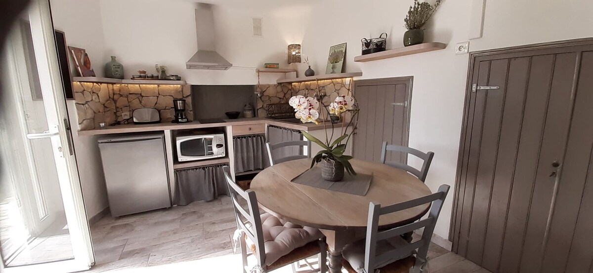 Estaremos encantados de compartir con usted un poco de nuestro «jardín secreto», ubicado en la ladera sur de un pequeño pueblo, entre el mar y la montaña. Casa independiente (27 m²): en la planta baja una sala de estar con cocina equipada y sofá cama supletorio de 140 (niños, adolescentes de baja estatura) El balcón orientado al sur le ofrecerá una gran vista durante sus comidas/aperitivos... Arriba un dormitorio equipado con TV, cama cómoda de 140 y zona de escritorio, estanterías y armario, baño con ducha y aseo.