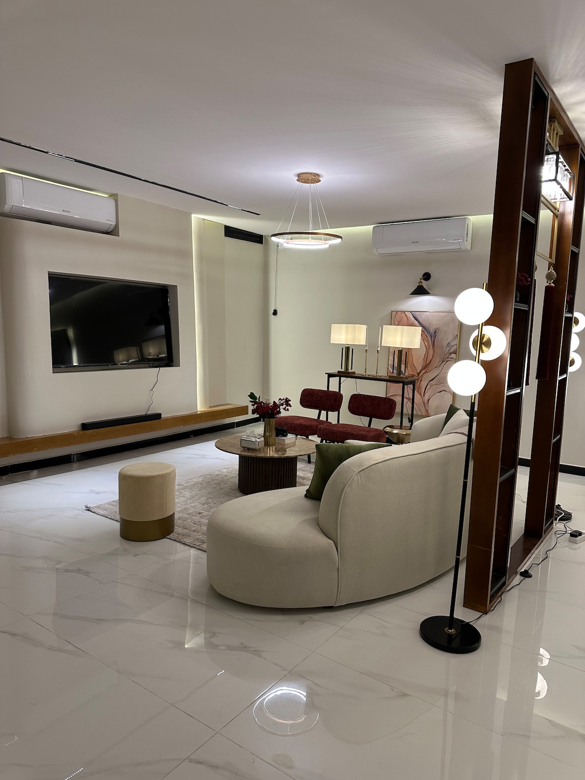Apartamento moderno en Al Muruj, diseñado con un toque moderno y elegante que combina el lujo del hotel y la comodidad del hogar. Cuenta con un cine privado con sillones reclinables, sonido 3D, proyector inteligente, máquina de palomitas y máquina de hielo. 1762259808 Cocina totalmente equipada, wifi de alta velocidad, llegada autónoma segura y ubicación privilegiada y tranquila cerca de Riyadh Boulevard y KAFD.