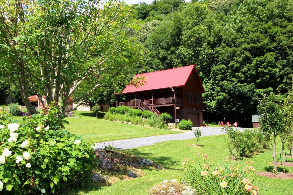 Red on Roan is the perfect getaway for trying, stressful times. This cabin is charming and cozy. The atmosphere will remind you of a different era, making guests feel at home. Spectacular front porch views! Perfect for watching the sunrise, drinking coffee, and taking in nature. Magnificent birds, butterflies, and deer habit the area. In spring and summer fireflies and the tranquil sound of the stream make grilling on the deck inviting!