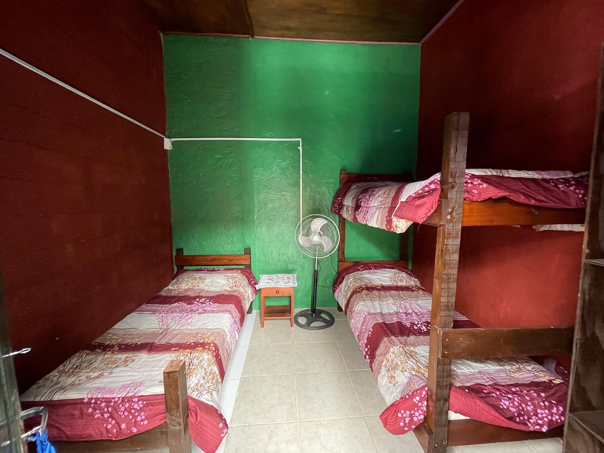 Hostel en frente al Mar! Habitación Cuádruple Económica, dos cuchetas. Baño Compartido Cocina compartida completamente equipada y áreas de estar compartida. Comedor externo con sombra. Disfrutar la playa hasta su hora dorada y volver a casa caminando por la arena...