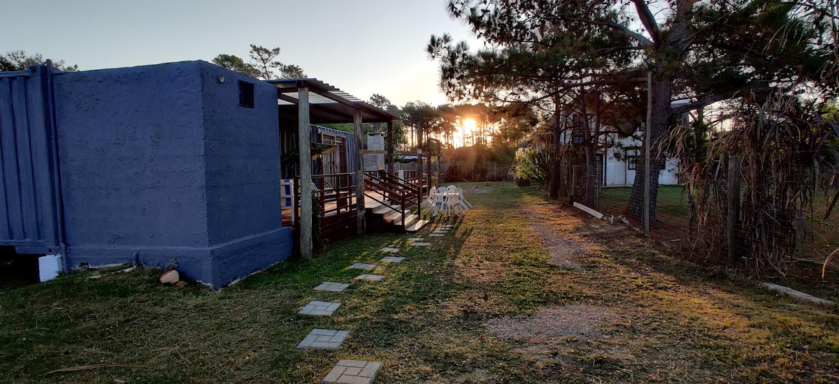 La unión del campo,y la playa ,hacen de este lugar un paraíso único . Ruta 10 km 250 a metros del mar está la Eco Casa Conteiner color naranja sustentable,sostenible,y natural. Ideal para parejas! Cerca del Cabo Polonio y La Pedrera .