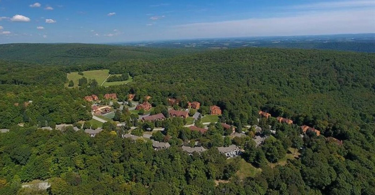 Disfruta de la naturaleza en un hermoso y tranquilo entorno con 100 acres de propiedad privada. Impresionantes vistas panorámicas que abarcan 45 millas en un tranquilo lugar natural con rutas de senderismo por todas partes. Accesible para personas con discapacidad. A poca distancia en coche de 2 grandes estaciones de esquí, el monumento conmemorativo del vuelo 93 y 2 bodegas. Varios restaurantes y una cervecería también a 15 minutos en coche. La propiedad incluye un fogón exterior que es un lugar favorito para que los huéspedes se relajen y disfruten de las impresionantes vistas de las montañas.