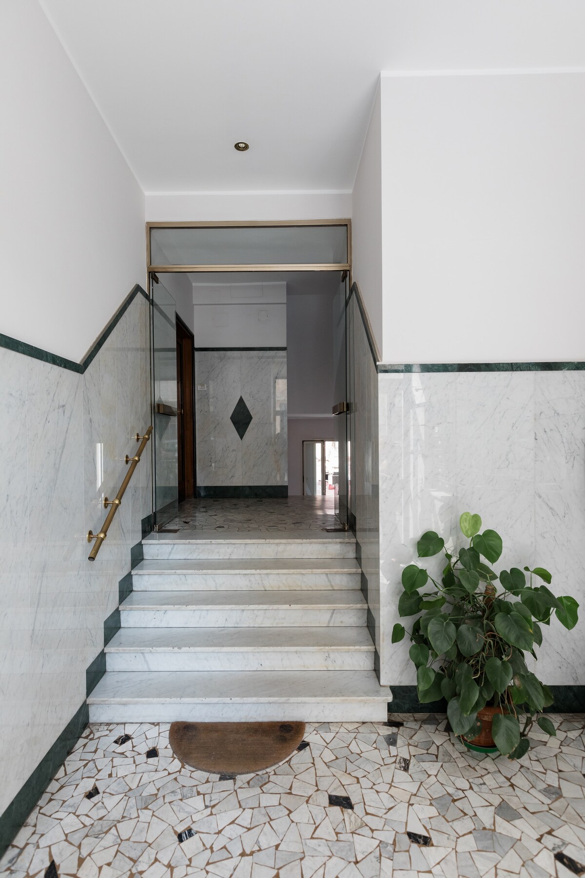El apartamento está compuesto por una habitación principal, que incluye una cocina completa, una mesa de comedor para 4 personas y una zona de descanso, y por un dormitorio tamaño queen (160 x 200 cm). Hay dos baños, uno completo en el dormitorio y otro 3/4 accesible desde la habitación principal. El apartamento tiene techos altos. Los servicios incluyen lo siguiente: Juego completo de toallas y sábanas Calefacción con temperatura regulable. Aire acondicionado Wifi gratis Monitores LED con Netflix y Amazon Prime. Juego de comedor completo para 6 personas. Gama completa de utensilios de cocina Horno microondas Condimentos (sal, aceite de oliva, azúcar y vinagre) Pequeños electrodomésticos de cocina (cafetera Dolce Gusto®, tostadora, hervidor de agua). Plancha de vapor y tabla de planchar. Lavadora con jabón y tendedero Aspiradora y accesorios de limpieza Secador de pelo Extintor de incendios Botiquín Seguro El apartamento es totalmente independiente y se garantiza la privacidad total. La única interacción necesaria es en el momento del registro, pero estamos a disposición de los huéspedes para cualquier información o necesidad. Los contactos de emergencia se proporcionarán a la llegada. El apartamento está en el centro de la ciudad, a solo 50 metros de las Termas de Diocleciano y del Ministerio de Finanzas. Un poco más lejos se encuentran la estación de Termini, la embajada británica y la Piazza Repubblica, y hay muchos restaurantes y cafeterías cerca. Gracias a la proximidad de la estación de Termini, el lugar más conectado de Roma, se puede llegar fácilmente a casi cualquier lugar en autobús, metro o tren, incluidos Tivoli y la antigua Ostia, pero en realidad muchos de los puntos de interés más importantes también están a poca distancia a pie del apartamento. IMPORTANTE: Ten en cuenta que hay cinco escalones delante de la entrada.