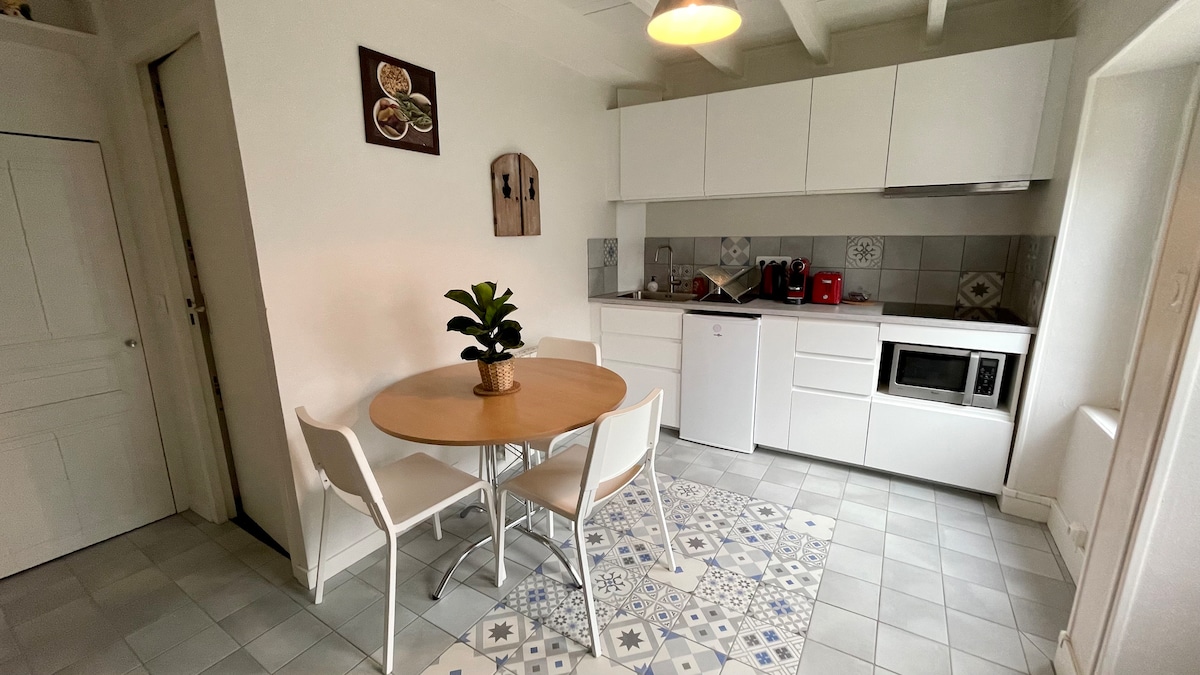Estudio en el centro de Romagnat con todas las comodidades, podrá disfrutar de su tranquilidad y funcionalidad. Totalmente equipado y ropa de hogar. Situado en un callejón sin salida en la planta baja de una casa de pueblo (entrada y alojamiento privados), este apartamento consta de una sala principal con diferentes espacios: una zona de oficina, cocina y una zona de dormitorio con una cama doble. El baño consta de una ducha italiana y un inodoro separado. Aparcamiento público gratuito frente a la casa