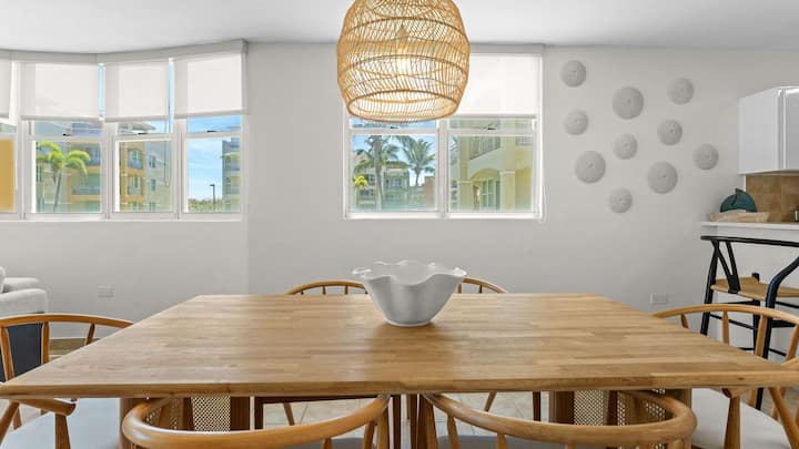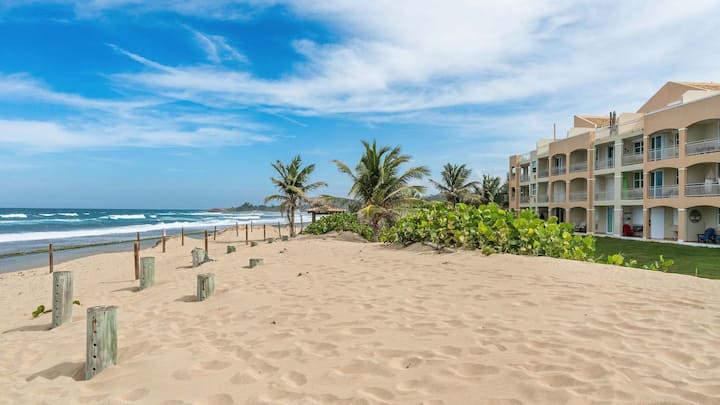 Situado en la exclusiva comunidad de Haudimar, este apartamento frente a la playa está a solo unos pasos de la arena, por lo que es perfecto para los amantes de la playa. Los servicios de la comunidad, que incluyen una piscina, cancha de baloncesto, cancha de tenis y parque infantil, se suman a la comodidad y la diversión. Explora senderos panorámicos cercanos para bicicletas, surf en Jobos o Middles, esnórquel y paseos a caballo. A las familias les encantarán las atracciones como el parque acuático Las Cascadas y las cascadas Gozalandia. Después de un día de aventuras, disfruta de una vibrante cena y vida nocturna a pocos minutos.
