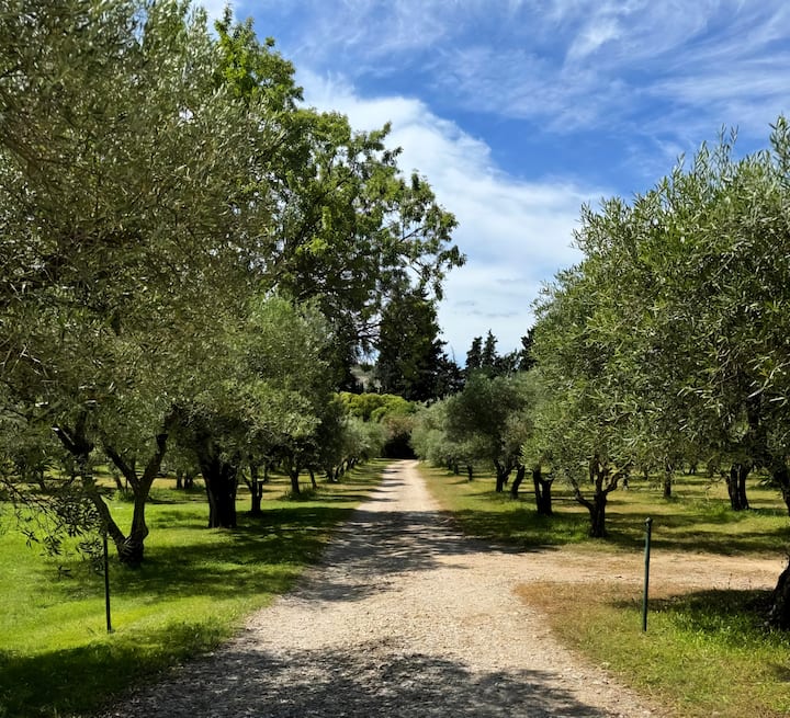 Muy bonito parque de1,3 Ha, plantado con casi 200 olivos donde se encuentran todas las esencias mediterráneas emblemáticas de la dulzura de la vida provenzal.