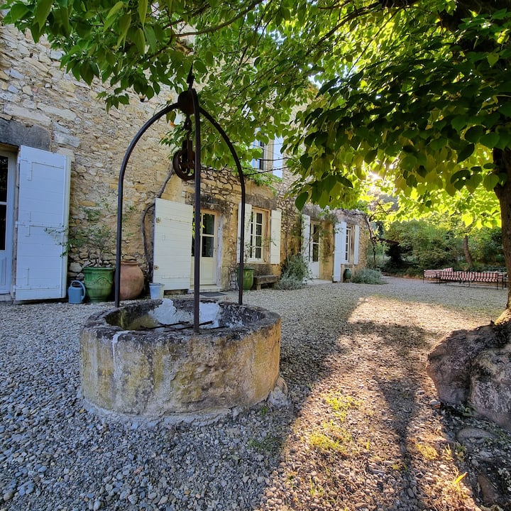Tranquilo, pero a pocos minutos del pueblo, está escondido en el corazón de un hermoso parque de1,3 hectáreas, plantado con casi 200 olivos donde se encuentran todas las esencias mediterráneas.