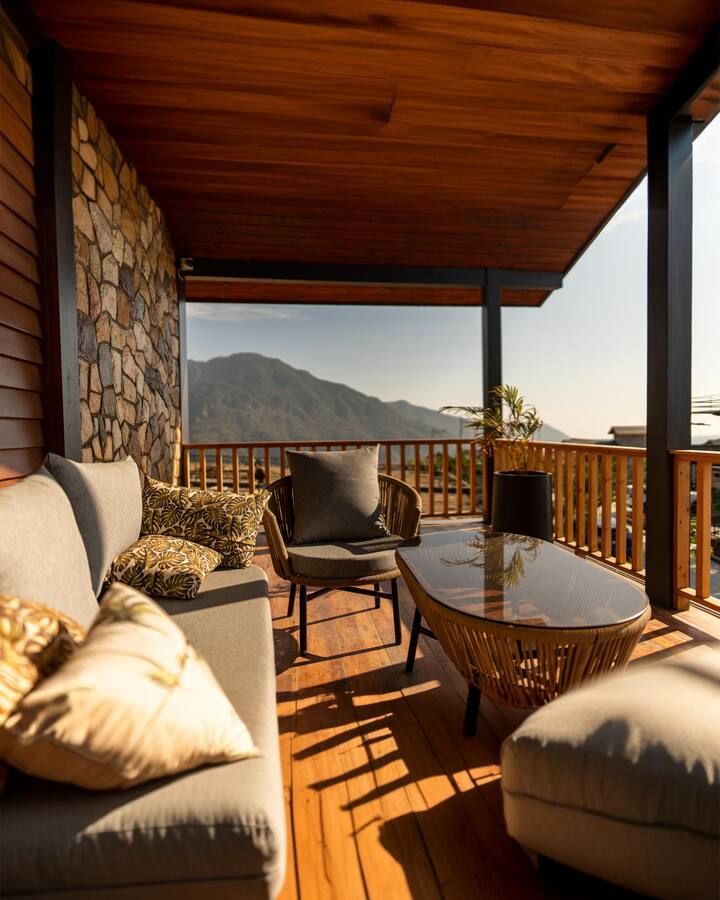 • Enorme balcón estilo terraza café para chai, vino y observación de estrellas