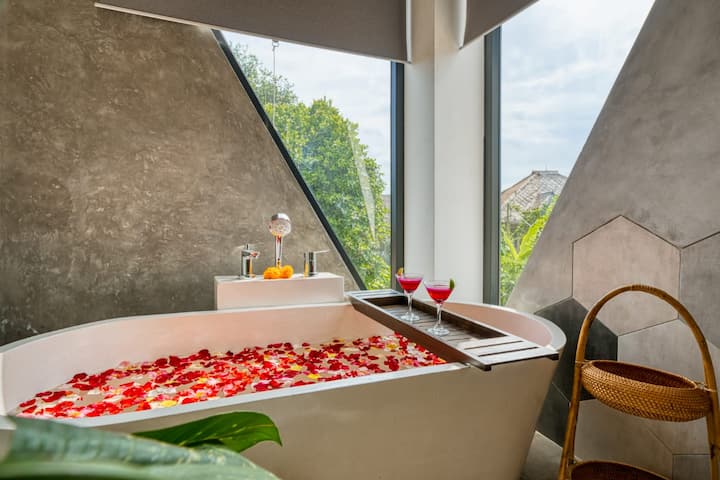 ¡Este lujoso espacio ofrece aún más flexibilidad para tu estadía! ¿Necesitas espacio adicional? Un cuarto dormitorio completo está disponible para alquilar, lo que te da la opción de alojar a más huéspedes cómodamente. Perfecto para grupos más grandes o para aquellos que simplemente quieren más espacio para relajarse, este dormitorio adicional se puede desbloquear por una tarifa adicional de 500.000 IDR/noche, lo que garantiza una experiencia verdaderamente personalizada para tu escapada.